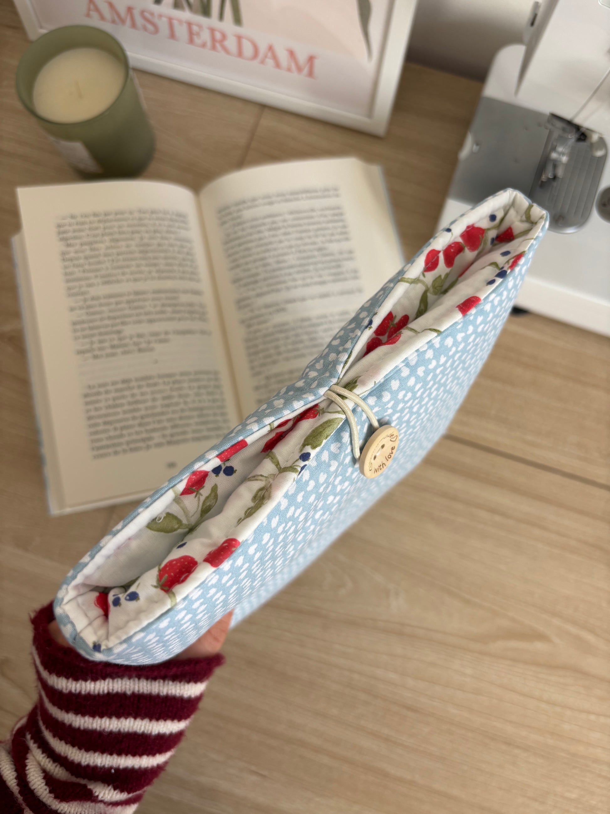 Nos pochettes à livres faites main, rembourrées et personnalisables, s’adaptent aux formats poche et broché 🌟