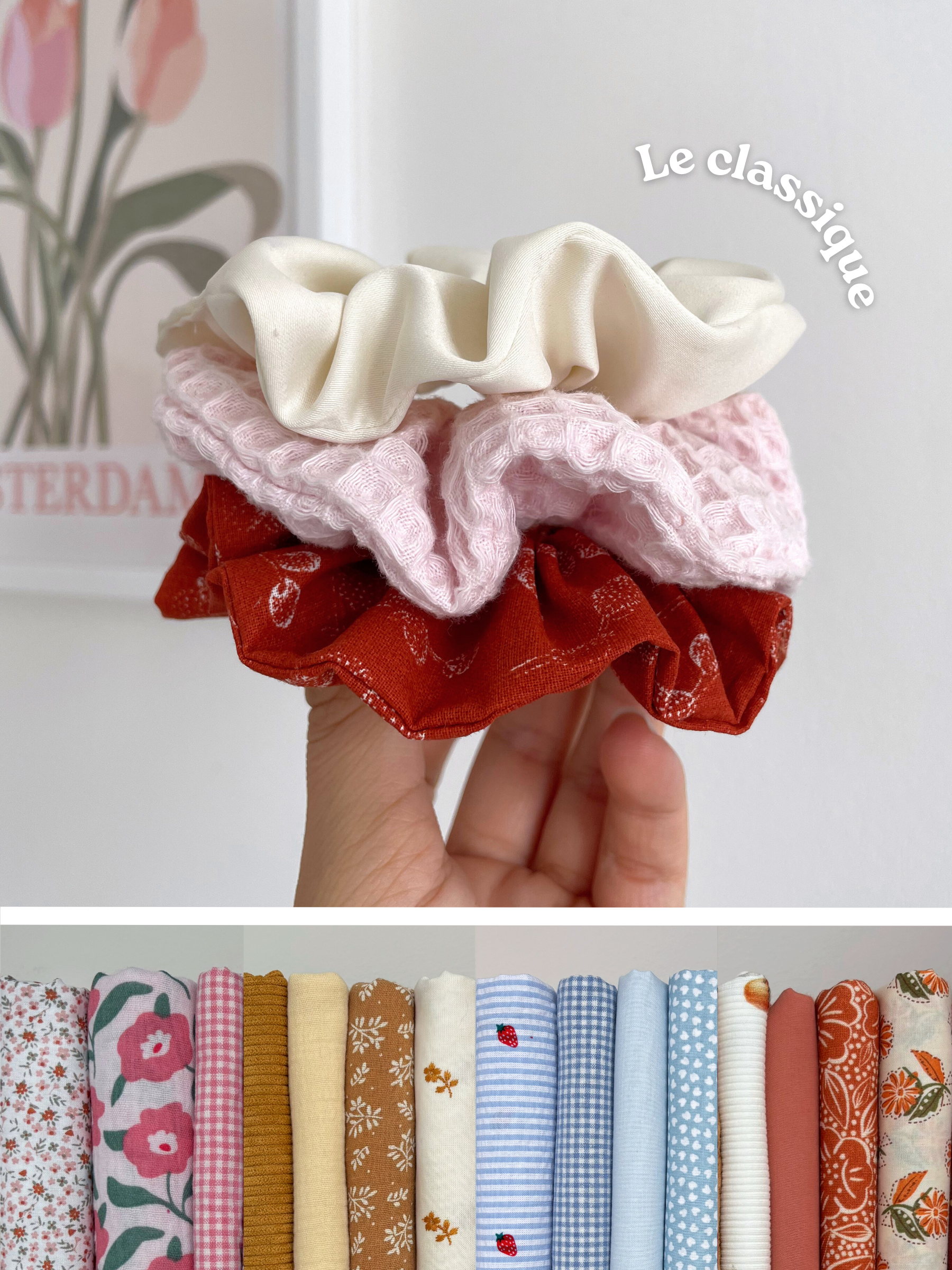 Ajoutez une touche de couleur à vos coiffures avec mon chouchou fait main en tissu ✨. Chaque chouchou est soigneusement fabriqué à la main avec des tissus colorés et uniques 🌈. Vous pouvez même le personnaliser en choisissant parmi plus de 80 tissus, pour un style qui vous ressemble 👗.